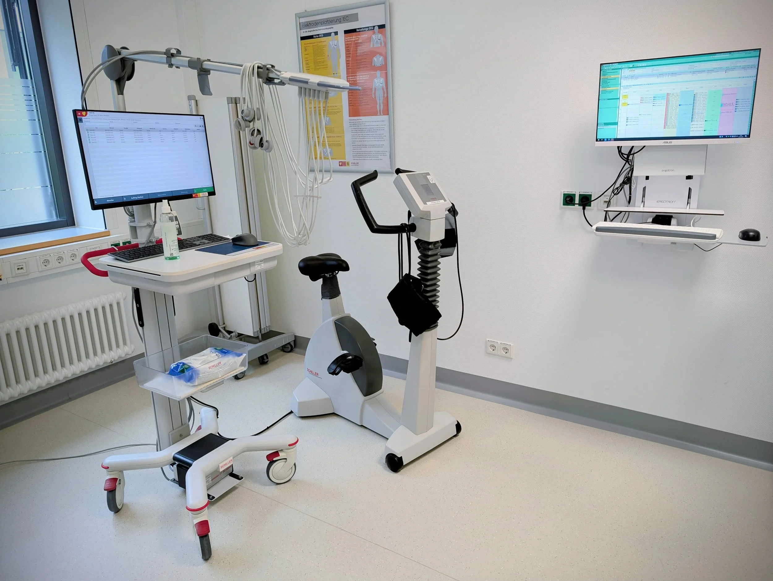 Im Rahmen spezieller elektrischer Herzkatheteruntersuchungen können wir die Reizleitungseigenschaften des Herzens untersuchen - hierzu werden über die Leiste elektrische Herzkatheter am Herzen positioniert und über Provokationsmanöver die Herzströme vermessen. Auftretende Rhythmusstörungen können unter Verwendung eines hochmodernen 3D-Navigationssystems mit Röntgen-Bildfusion genau kartiert werden, und können prinzipiell auch Strahlen- und Kontrastmittelfrei erfolgen. In gleicher Sitzung kann dann auch die Verödung der Herzrhythmusstörung erfolgen.